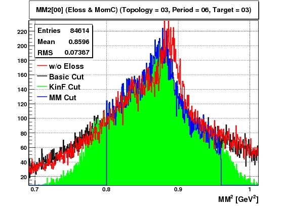 The kinematic fitting gives particle's four vectors as the output. I make the plot using these four vectors like making the missing-mass plot. And then I applied the cut (KinF Cut).