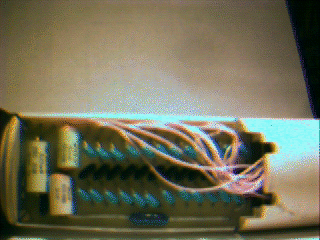 Several features are worth pointing out here. The large black chip at the front of the base is a custom made CMOS address and control voltage unit. Behind it are a pair of op-amps (one of these is obscured by the yellow capacitor.)