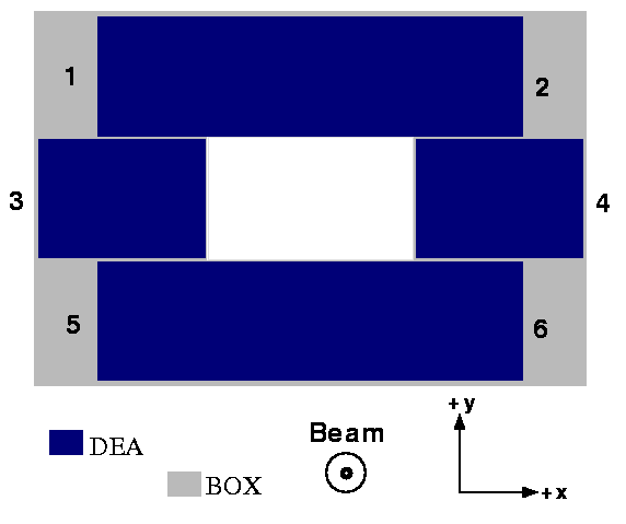The sizes and locations of the sensitive areas of DEA are thus as follows (assuming that the center of the hole is at (x,y) = (0,0):